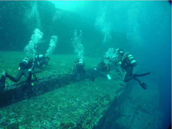 Nằm ở bờ biển phía Nam của Yonaguni, Nhật Bản, tàn tích ngập dưới nước này được ước tính khoảng 8.000 năm tuổi. Mặc dù, một số người tin rằng nó được hình thành bởi hiện tượng địa lý nhưng cho tới nay người ta xác nhận nó là sản phẩm nhân tạo bởi nghệ thuật khắc trổ phức tạp. Nó được phát hiện vào năm 1995 bởi một thợ lặn thể thao bị lạc khỏi bờ biển Okinawa với một máy quay phim trong tay.