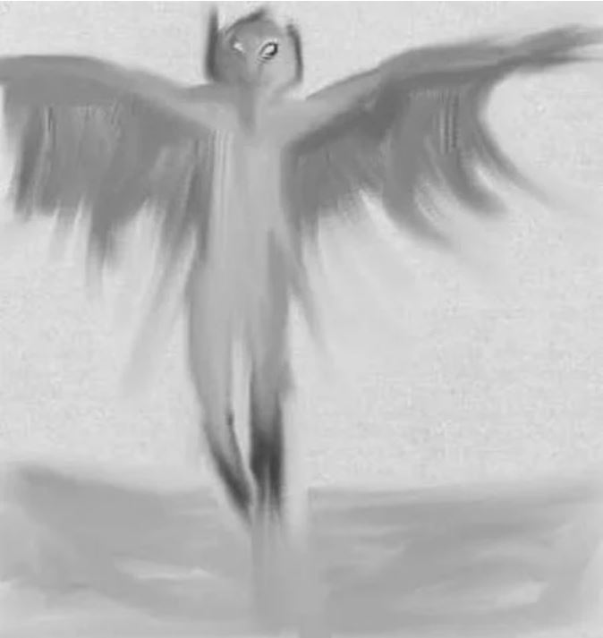 Ngạc nhiên hơn, con cú này có kích thước của một con người, có đôi tai nhọn, mắt đỏ và móng vuốt giống như những gọng kìm đen. Cơ thể của nó có một số điểm tương đồng với quái vật Mothman nổi tiếng với đôi cánh lớn màu xám.
