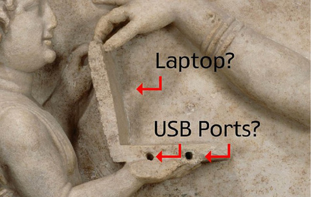 Chiếc máy tính xách tay đầu tiên trên thế giới ra đời từ thập niên 1970. Tuy nhiên đến năm 2014, một trang web theo thuyết âm mưu đã đăng tải một bức ảnh cho thấy laptop đã xuất hiện từ thời... Hy Lạp cổ đại.