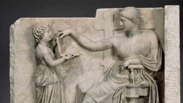 Theo các tài liệu cổ, vật bé gái đang cầm chỉ là một cái hộp phấn, hoặc hộp trang sức. Tuy nhiên những người theo thuyết âm mưu thì không thấy vậy. Họ thấy một chiếc laptop xịn, với cổng cắm USB ở hai bên. Hơn nữa, nhiều người còn tin rằng đây là cách để người Hy Lạp cổ đại liên lạc với "thần linh" - chính là người ở tương lai, hoặc thậm chí là... người ngoài hành tinh.