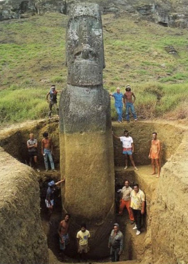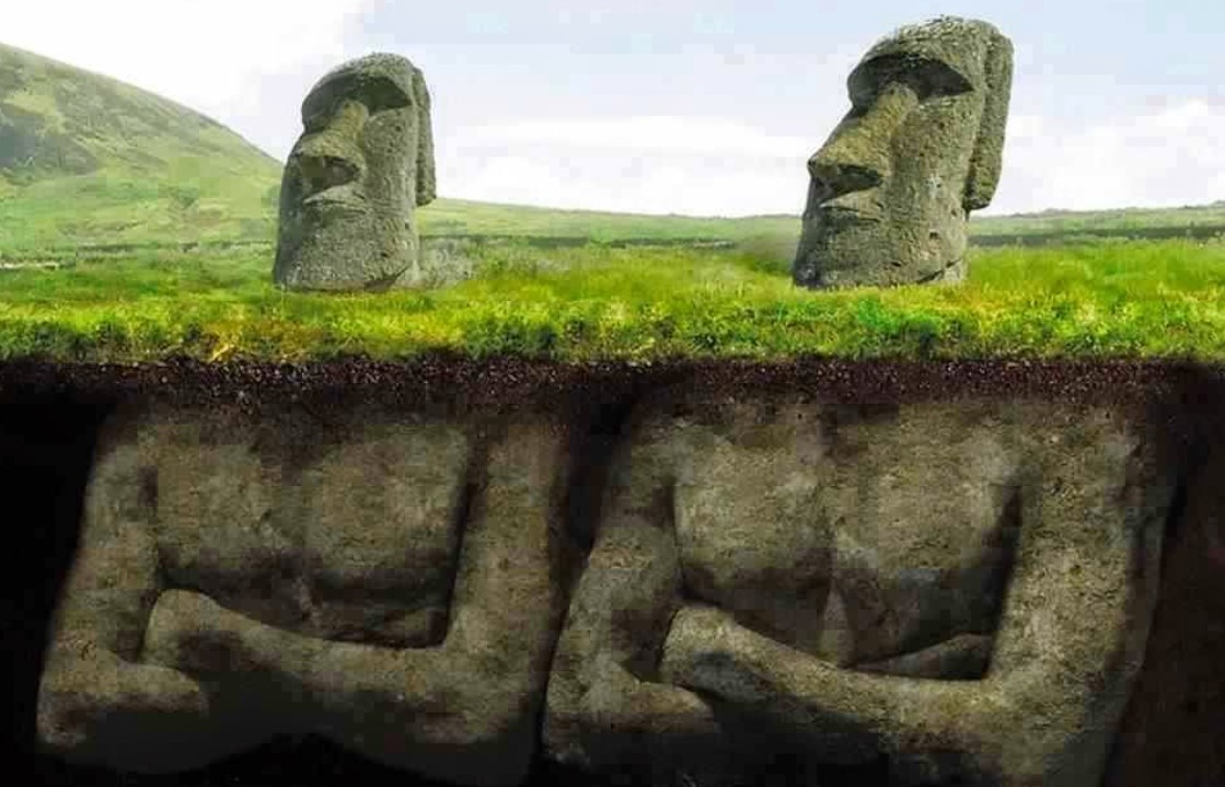 Những tảng đá hình người này vốn được biết đến với tượng bán thân. Cách đây không lâu, một số nhà khảo cổ đã tìm thấy một bức tượng đá lớn có khắc những hoa văn kỳ lạ ở trên thân tượng. Trong quá trình tìm kiếm lời đáp cho công trình này, bất ngờ họ đã phát hiện rằng, nhiều bức tượng đá trên đảo Phục Sinh không chỉ có nửa thân trên mà còn có phần thân dưới của bức tượng đang bị chôn vùi dưới lòng đất. Đó là một cơ thể rất lớn, với khối lượng lên đến hàng trăm tấn. Việc ai xây dựng nên những bức tượng này vẫn chưa có lời giải thích thỏa đáng.