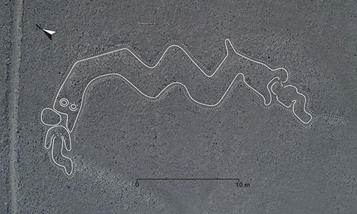 Geoglyph mô tả con rắn hai đầu sắp nuốt chửng người. (Ảnh: Đại học Yamagata).