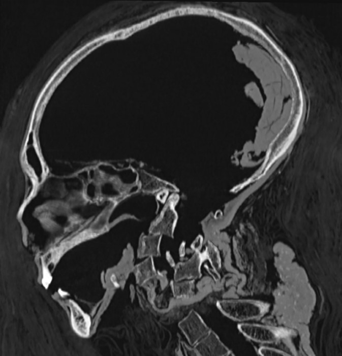 Phần não bộ đã khô nằm ở phía sau hộp sọ. (Ảnh: Đăng dưới sự cho phép của Sahar N. Saleem và Zahi Hawass)