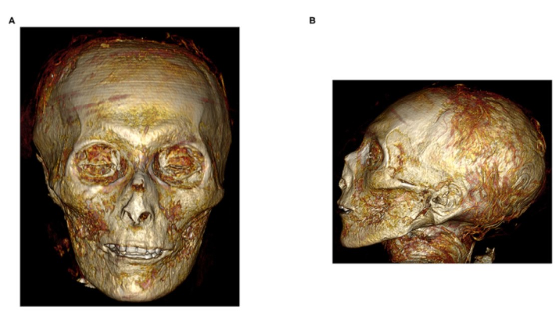 Hình ảnh chụp CT ba chiều phần đầu của xác ướp [pharaoh] Amenhotep I. (Ảnh: Đăng dưới sự cho phép của Sahar N. Saleem và Zahi Hawass)