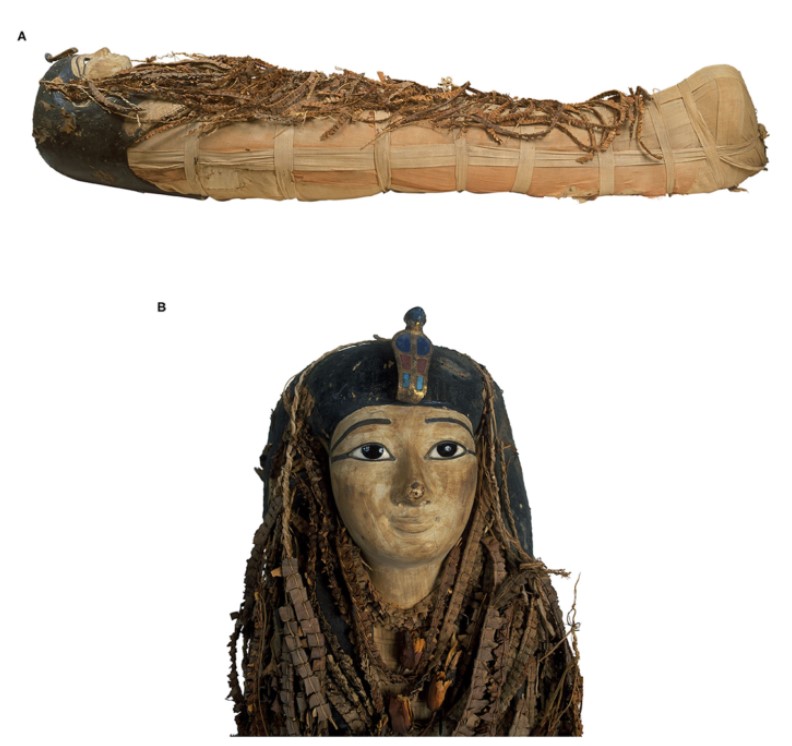 Xác ướp của [pharaoh] Amenhotep I với mặt nạ bằng gỗ phủ sơn và giấy carton. (Ảnh: Đăng dưới sự cho phép của Sahar N. Saleem và Zahi Hawass)
