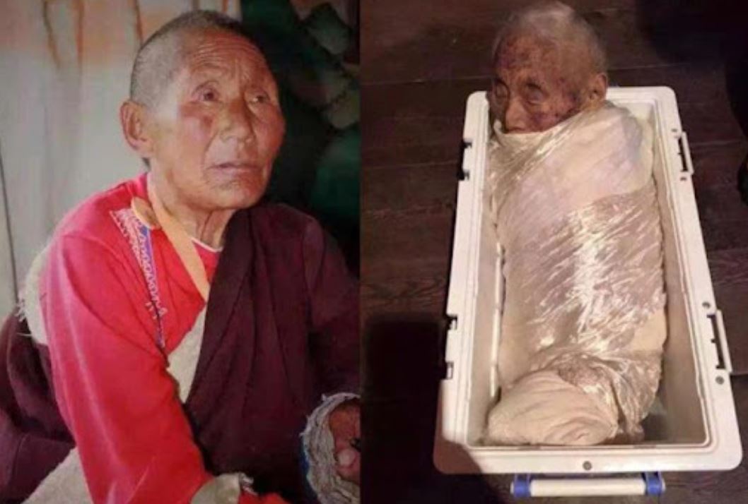 Thân thể trước (trái) và sau khi trải qua quá trình hồng hóa (phải) của một vị Lạt ma. (Ảnh: Gaia)