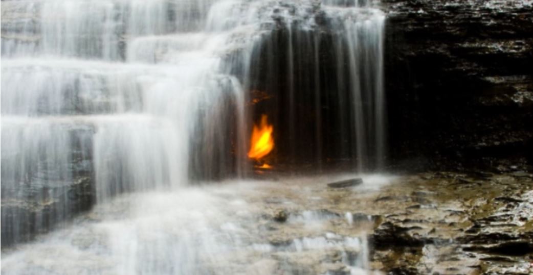 Bí ẩn “Ngọn lửa vĩnh cửu” bên trong thác nước thác Eternal Flame chưa bao giờ tắt