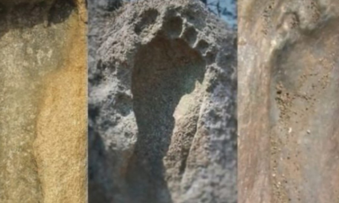 Dấu chân khổng lồ in trên đá. (Ảnh chụp màn hình Youmake)