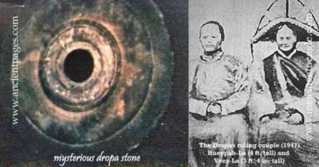 Thông điệp đáng kinh ngạc trên các hòn đá Dropa được viết bởi những sinh vật tự gọi mình là Dropa. Đĩa đá kể lại câu chuyện của người Dropa, những nhà du hành không gian từ một hành tinh xa xôi. Phi thuyền của họ rơi xuống một vùng núi không thể tiếp cận là Baian-Kara-Ula. Những người Dropa trên phi thuyền đã tìm nơi trú ẩn bên trong các hang núi.