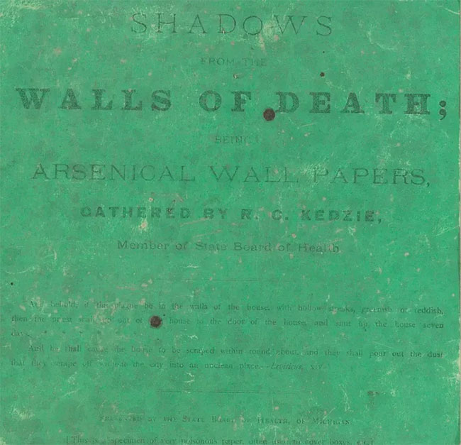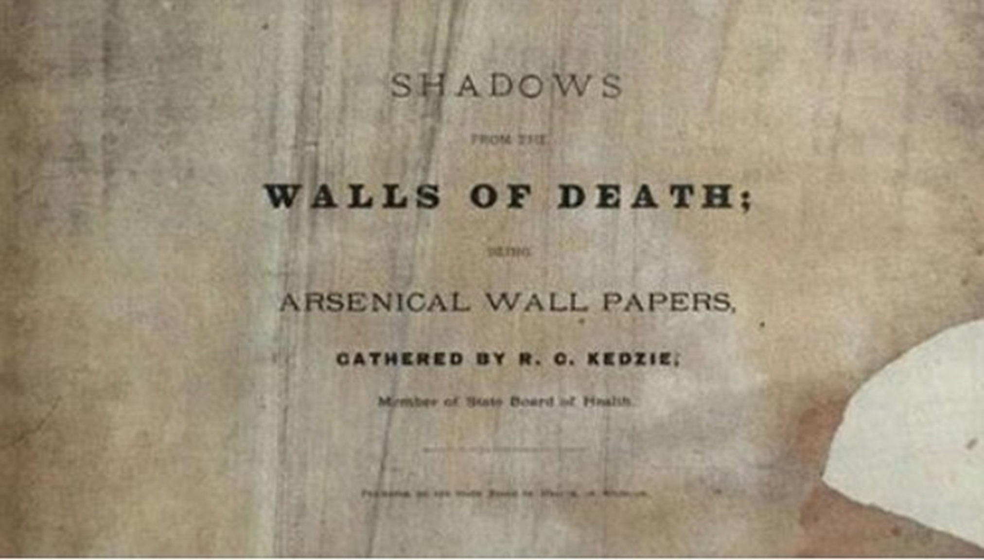 Shadows From The Walls Of Death được in năm 1874, là một cuốn sách đáng chú ý vì hai lý do: sự hiếm có của nó và những lời đồn đại rằng nếu bạn chạm vào nó, nó có thể giết chết bạn. Nó chỉ chứa dưới một trăm mẫu giấy dán tường, mỗi mẫu đều chứa hàm lượng thạch tín có thể dẫn đến những nguy hiểm tiềm tàng.