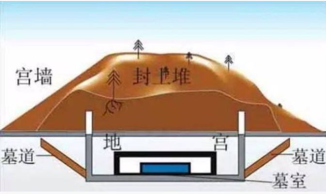 Địa cung trong lăng mộ được bao bọc bởi một lớp tường thành bằng đất (Ảnh: Baidu)