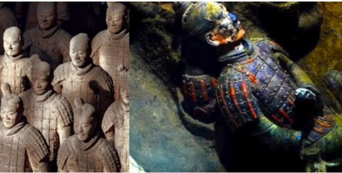 Minh chứng rõ ràng nhất là đội quân đất nung trong lăng mộ của Tần Thủy Hoàng. Những pho tượng đất nung hình chiến binh vốn dĩ được "khoác" lên mình những tấm áo giáp và chiến bào được sơn màu tím.