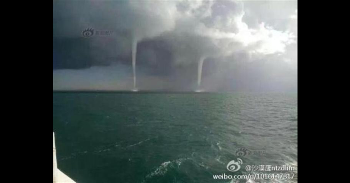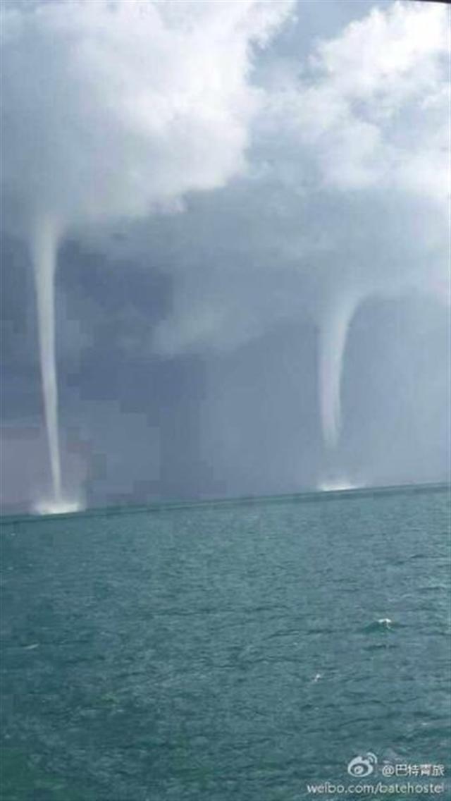 Theo tờ ” Nhật báo Thanh Hải” của Đại lục báo cáo rằng vào lúc 9:50 ngày 20 tháng 10, phía trước và sau vùng núi phía bắc của Hồ Thanh Hải xuất hiện cảnh tượng ngoạn mục bao gồm 9 vòi “ rồng hút nước” với kích cỡ lớn nhỏ khác nhau. Cột nước trắng xóa tạo thành cột nước xoáy, gắn từ bầu trời đến mặt hồ, những nhân viên chuyên công tác tại thắng cảnh này và khách du lịch đã chứng kiến cảnh tượng hùng vĩ trên biển ​​” 9 vòi rồng hút nước” .