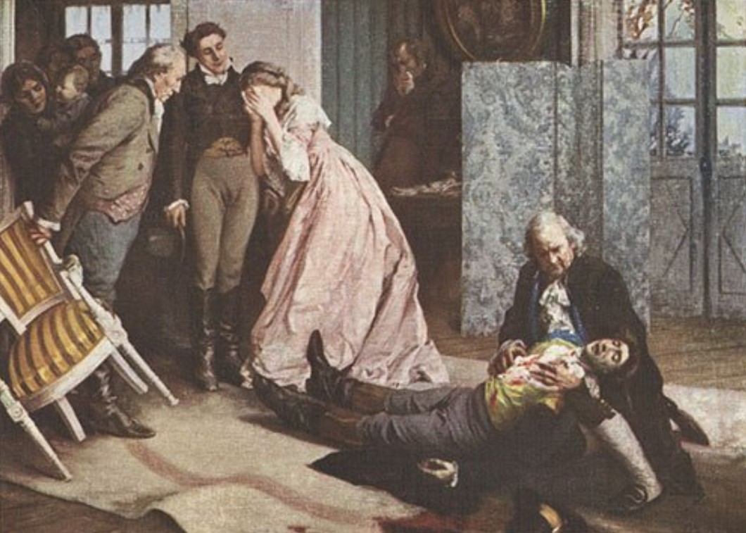 Hình minh họa cảnh Werther tự sát trong câu chuyện.