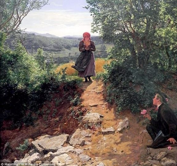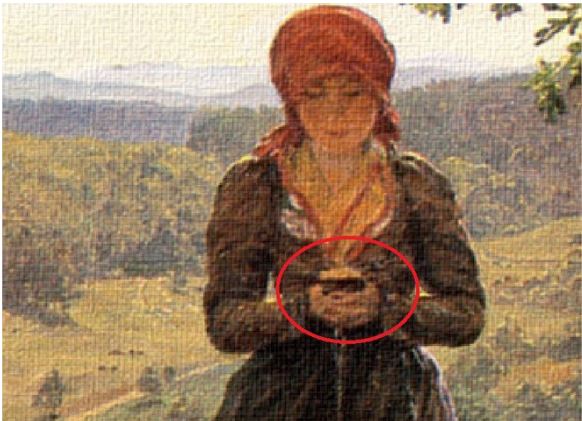 Đây là bức họa "Die Erwartete" được danh họa người Úc Ferdinand Georg Waldmüller vẽ những năm 1850. Tuy nhiên, trên tay cô gái như đang cầm chiếc smartphone thời hiện đại!
