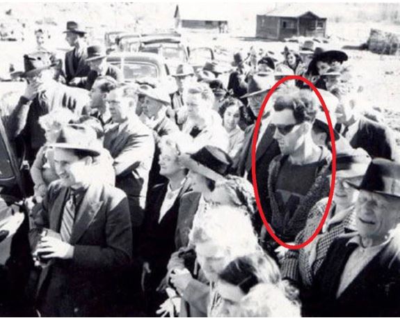 Trông anh ta thật "lạc lõng" giữa dòng người tụ tập tại Gold Bridge vào những năm 1940.