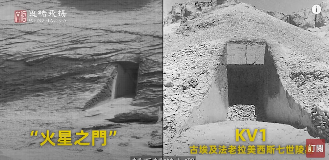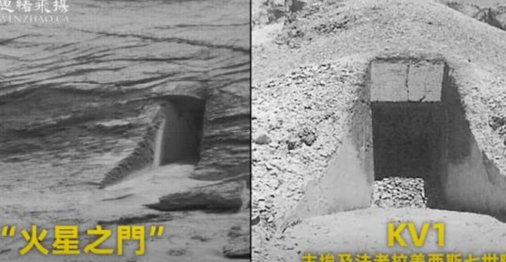 Đây là hình ảnh so sánh cổng vào hang trên sao Hỏa và cổng lăng mộ của Pharaoh Ai Cập cổ đại Ramses VII. (Ảnh chụp màn hình)