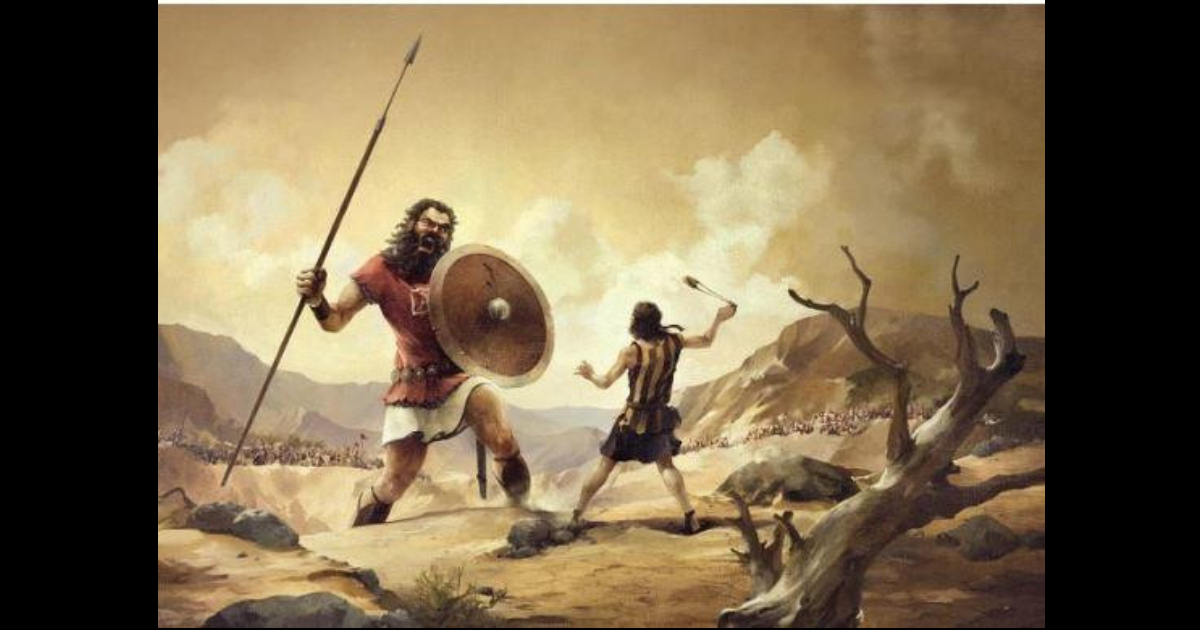 Câu chuyện về cuộc chiến giữa Goliath, chiến binh người Philistine, và Vua David của người Do Thái được nhắc đến trong Kinh Thánh.