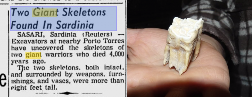 Newman càng thêm tin tưởng vào sự tồn tại của người khổng lồ khi nhắc đến một bài báo nói về bộ xương 8 chân được khai quật trên đảo tại Porto Torres, có niên đại cách đây khoảng 4.000 năm, hay những bộ xương có kích thước khổng lồ được một nông dân khác tìm thấy khi đang cày ruộng.