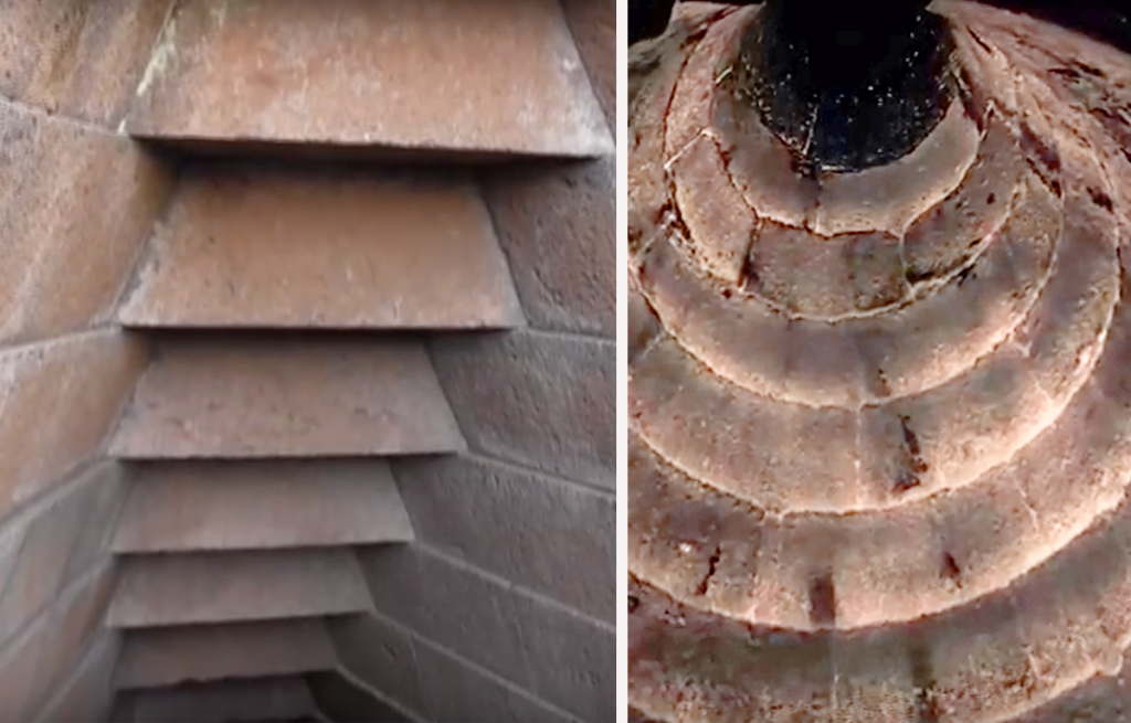 Bên trong ngôi mộ khổng lồ nhìn từ giếng Santa Cristina. (Ảnh qua YouTube)