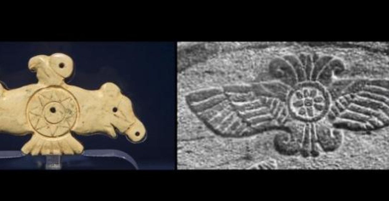 khai quật được con chim ưng bằng ngọc có niên đại 5.800 năm, lại tương đồng với vật tổ (Totem) của người Sumer nằm cách đó 7.000 km. (Chụp clip)