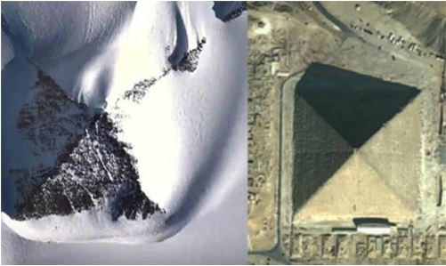Bức ảnh cho thấy một cấu trúc có 4 mặt và rất giống những kim tự tháp Giza ở Ai Cập. Nó làm dấy lên giả thuyết con người từng sống ở khu vực lạnh cóng này.