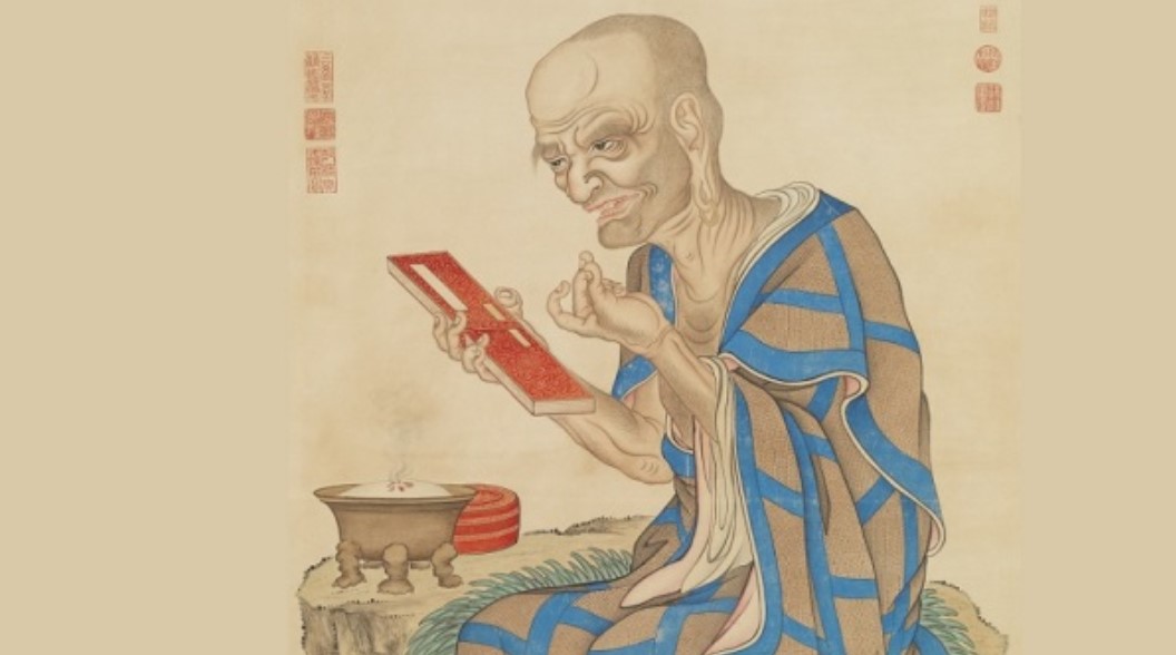 Cao tăng này tướng mạo thật xấu xí, khó coi, lại còn hốc hác và rách rưới. (Tranh "16 La Hán" của Đinh Quan Bằng đời Thanh - Bảo tàng cố cung Đài Bắc).