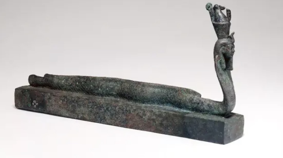 Quan tài chứa thi thể đầu người mình rắn đội vương miện, liên quan đến vị thần Ai Cập cổ đại Atum. (Hình ảnh: Bảo tàng Anh)