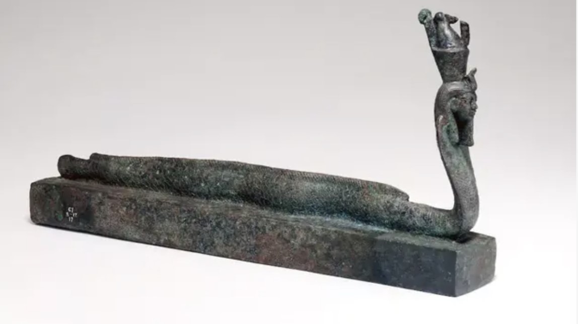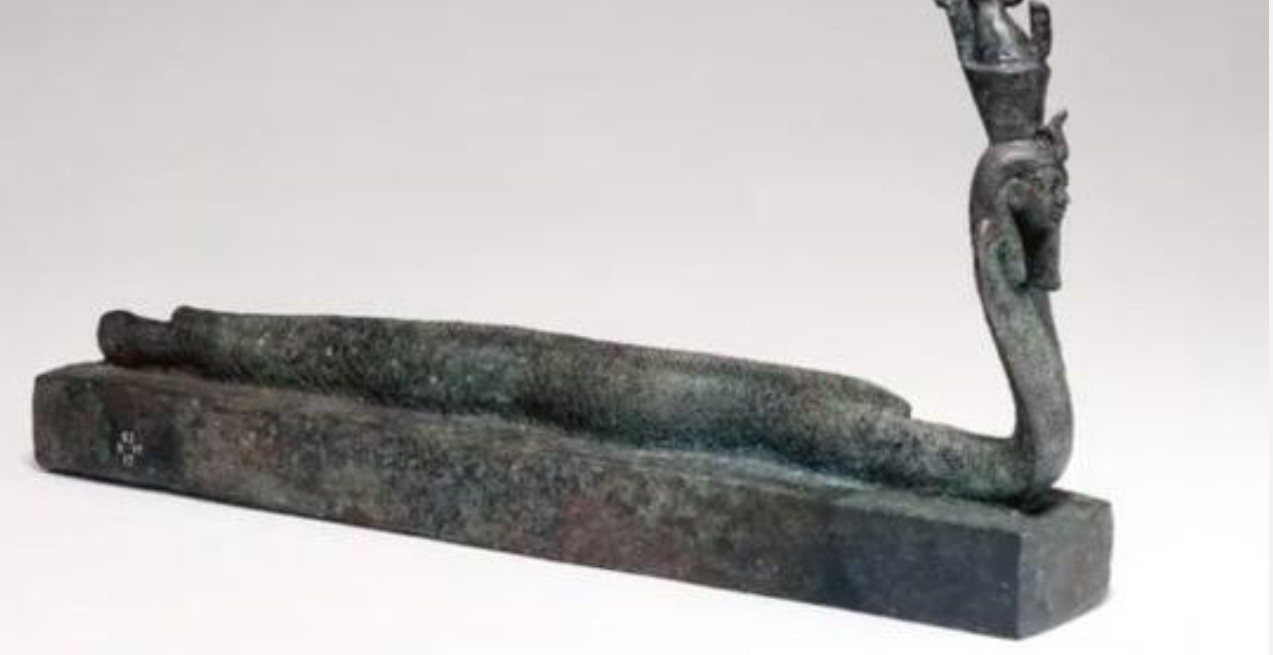 Quan tài chứa thi thể đầu người mình rắn đội vương miện, liên quan đến vị thần Ai Cập cổ đại Atum. (Hình ảnh: Bảo tàng Anh)