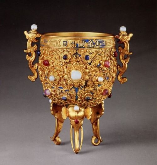 Chiếc cốc uống rượu được tạo tác từ vàng này vốn thuộc sở hữu của Hoàng đế Càn Long, là thứ mà nhà vua yêu cầu chế tác nhân dịp sinh nhật tuổi 30 của mình.