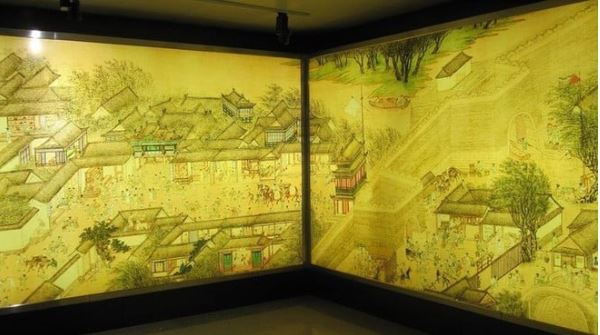 Một góc của bức họa phẩm "Thanh minh thượng hà đồ" nổi tiếng được lưu giữ tại Cố Cung. (Ảnh: Nguồn Baidu).