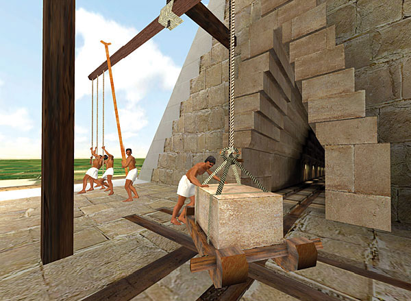 Đây là bước gây nhiều tranh cãi nhất trong quá trình xây dựng một kim tự tháp. Hãy nhớ một điều quan trọng là người Ai Cập khi đó hoàn toàn chưa có các loại máy móc hiện đại hỗ trợ. Ngay cả bây giờ, tức là khoảng 4000 năm sau khi các kim tự tháp Giza được hoàn thành, việc nâng các khối đá nặng hàng tấn lên độ cao hàng chục mét vẫn là một thử thách lớn. Vậy tại sao, 4000 năm trước, con người, cụ thể là người Ai Cập đã làm được việc đó?
