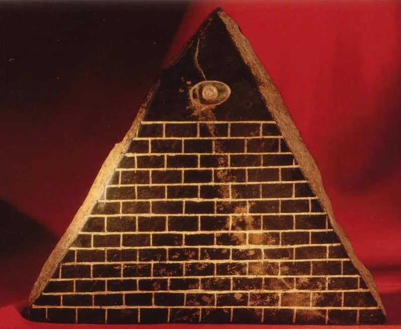 Ngoài ra, trên đỉnh kim tự tháp còn có một con mắt cũng rất đặc biệt. Hình ảnh con mắt này không phải là biểu tượng phổ biến của người Maya hay người Aztec cổ đại. Hình ảnh này khiến người ta liên tưởng tới sự liên quan với Ai Cập cổ đại chính là Con mắt Horus của Ai Cập, biểu tượng mạnh mẽ nhất trong thần thoại Ai Cập và là thế lực chống lại cái ác. Nhưng vấn đề là Con mắt Horus của Ai Cập thường được dùng làm vật trang trí hoặc biểu tượng chứ không được khắc trên đỉnh kim tự tháp.