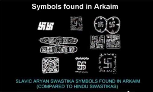 Những biểu tượng chữ Vạn của người Aryan được tìm thấy tại Arkaim (so sánh với biểu tượng của Hindu giáo).