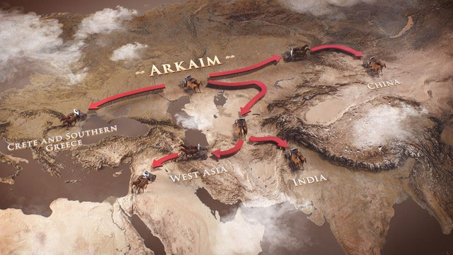 Việc xây dựng Arkaim được cho là do những người nói tiếng Proto-Indo-Iranian đầu tiên của nền văn hóa Sintashta, mà một số học giả tin rằng đại diện cho những người Proto-Indo-Iranians trước khi họ chia thành các nhóm khác nhau và di cư đến Trung Á và từ đó đến Ba Tư, Ấn Độ và các khu vực khác của Âu Á.