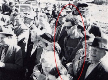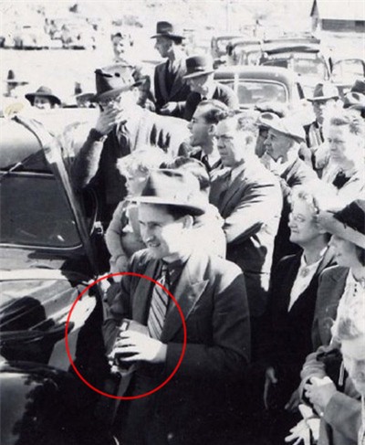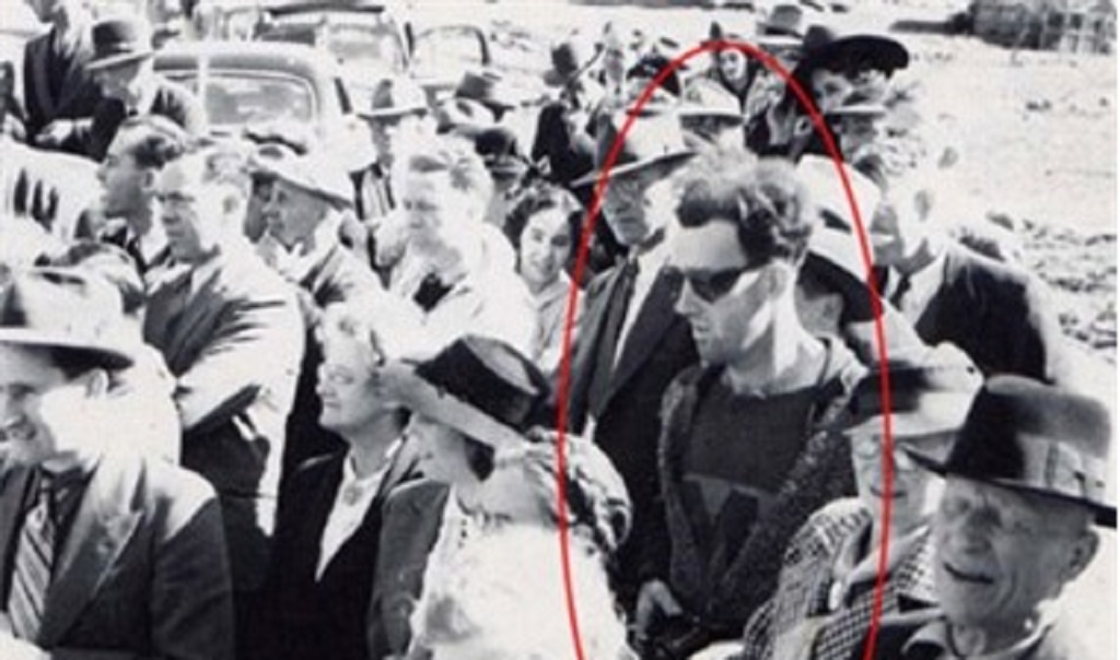 Trong bức ảnh được chụp năm 1941 tại Cầu South Forks, Gold Bridge, Canada, giữa đám đông ăn mặc theo trời trang thập niên 40 thì người ta bất ngờ phát hiện ra một người đàn ông trong trang phục hiện đại với áo phông và cardigan, đeo kính râm và mang theo một chiếc máy ảnh trước ngực.