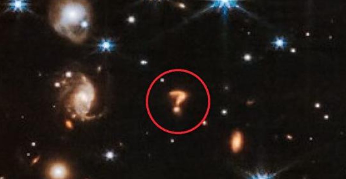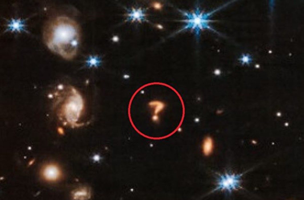 Kính viễn vọng Không gian Webb của NASA đã chụp được một dấu chấm hỏi khổng lồ trong không gian. Các khoa học gia cho rằng đó có thể là kết quả của việc hai thiên hà va chạm với nhau. (Ảnh: NASA)