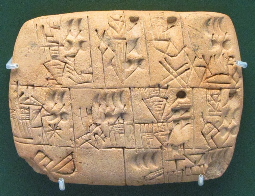 Bảng chữ viết thời kỳ đầu ghi lại việc phân phát bia, 3100-3000 trước Công nguyên. (Ảnh: Wikipedia/CC BY-SA 3.0)