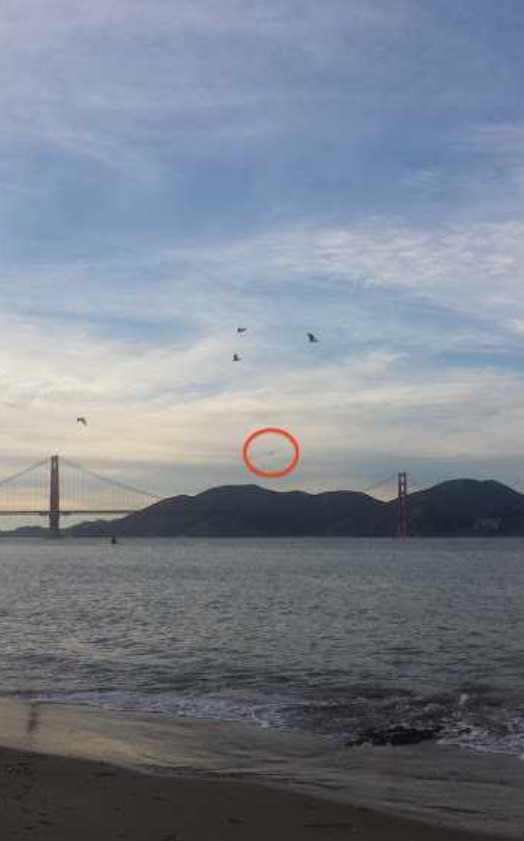 Trong bức ảnh được phát tán, một vật thể giống như UFO đang bay ngang qua bầu trời khu vực cầu Golden Gate đã được chụp lại. Những hình ảnh này nhận được quan tâm rất sâu sắc của cư dân Mỹ.