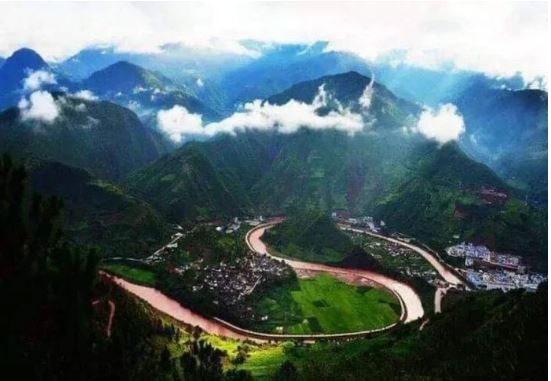 Dòng suối dài uốn lượn hình chữ S quanh những ngọn núi chính là ranh giới phân cách 2 phần âm dương của ngôi làng.