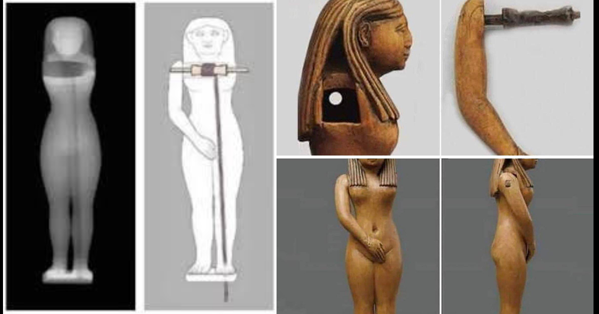 Theo tờ EgyptIndependent, phát hiện này được tìm thấy trong một bức tượng gỗ đã nằm trong Bảo tàng Mỹ thuật Metropolitan suốt nhiều năm trời, nhưng không ai biết về bí mật của nó, cho đến khi các chuyên gia ngành Ai Cập học sử dụng máy chiếu tia X và thấy được hệ thống vận hành cơ khí bên trong, hoạt động nhờ một trục kéo giống như ròng rọc. Trục này nằm ngang, trùng với phần vai của bức tượng người nữ mà bạn thấy trong hình ảnh bên dưới và xoay được nhờ một hệ thống dây chạy dọc theo chân trái, ẩn bên trong bức tượng.