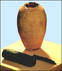 Pin điện cổ đại, được trưng bày tại Viện bảo tàng Bát-đa (ảnh: BBC)