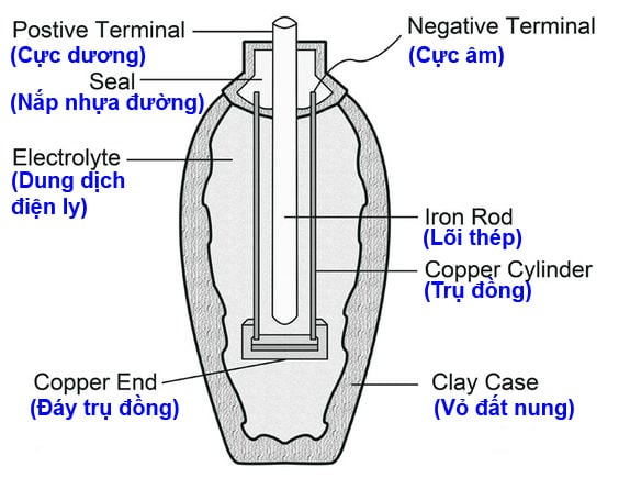 Cấu tạo pin điện cổ đại (ảnh: pintertest, việt hóa: TTVN)