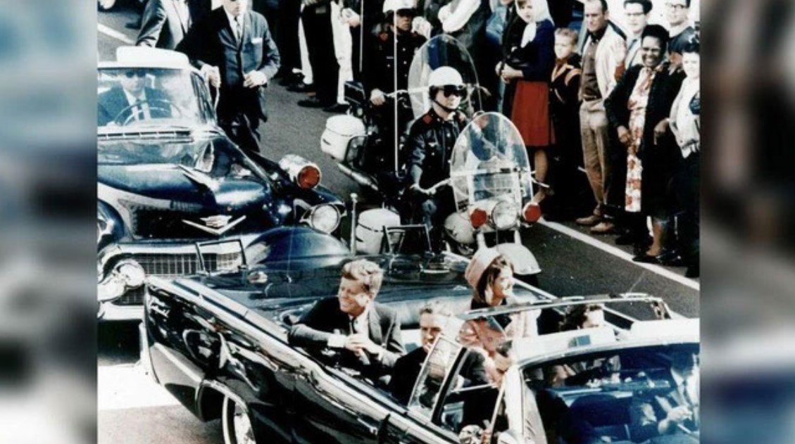 Bức ảnh cuối cùng của Tổng thống John F. Kennedy ngồi trên ô tô đi ngoài đường trước khi bị ám sát.