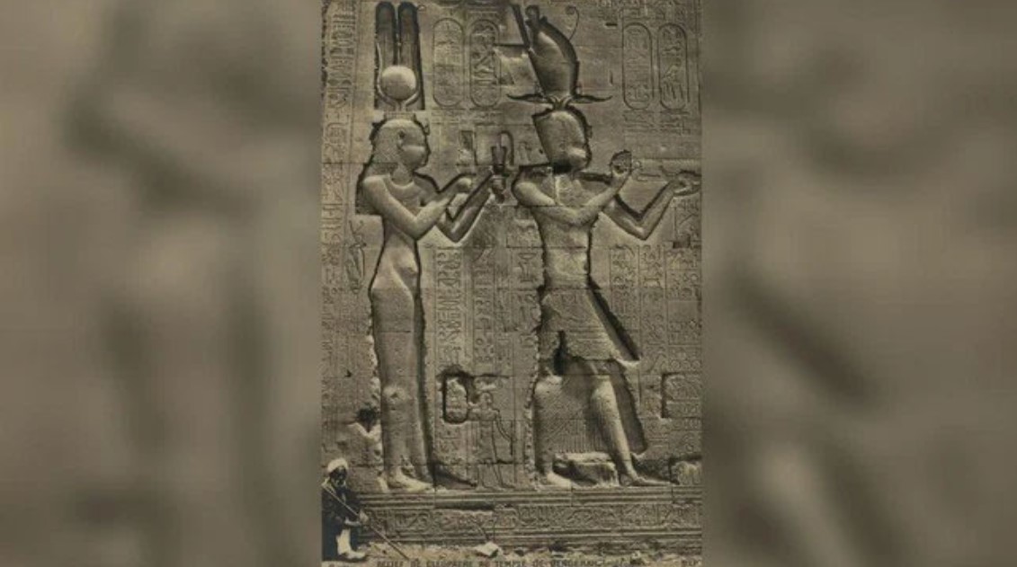 Bức điêu khắc hình ảnh nữ hoàng Cleopatra VII và con trai của mình Caesarion tại đền thờ Hathor.