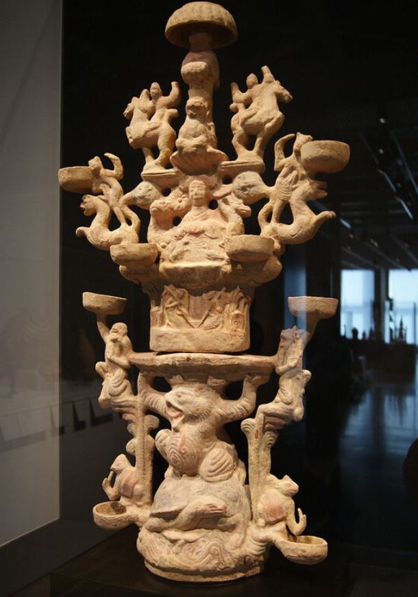 Bệ đỡ đèn vào khoảng thế kỷ 1-2 với hình dạng của núi Côn Luân với vai trò là cột chống trời, đây là vương quốc của Tây Vương Mẫu. (Ảnh: Wikipedia)