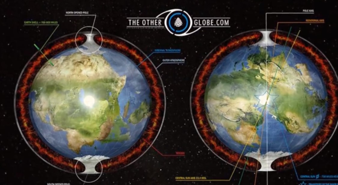Shambala nằm bên trong Trái đất cũng được hỗ trợ bởi Thuyết Trái đất rỗng, thuyết này cho rằng hành tinh của chúng ta phần lớn là rỗng, chứa không gian bên trong đáng kể có thể chứa thảm thực vật và các dạng sinh vật sống. (Ảnh: Ảnh chụp màn hình / YouTube)
