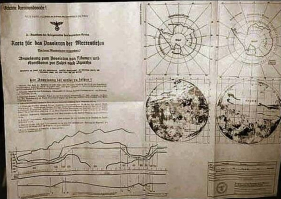 Một tấm bản đồ ở Neuschwabenland, Nam Cực của Đức Quốc xã gần đây đã được công bố, nó được tìm thấy trong một tàu ngầm U-boat của Đức Quốc xã. Nội dung tấm bản đồ nói lên rằng Trái Đất là một quả cầu rỗng. Nó thậm chí đã mô tả phần chính của lục địa có tên là Liberia. Đại dương chính ở đây có tên Valkarian. Phần dưới của bản đồ mô tả thành phố Shambala. Thành phố này trùng khớp với lời kể của các nhà sư Tây Tạng. Trong nhiều năm, họ cũng tin rằng Shambala là một thành phố nằm dưới bề mặt hành tinh chúng ta. Tấm bản đồ đã cho thấy vị trí thực sự của thành phố huyền thoại này.