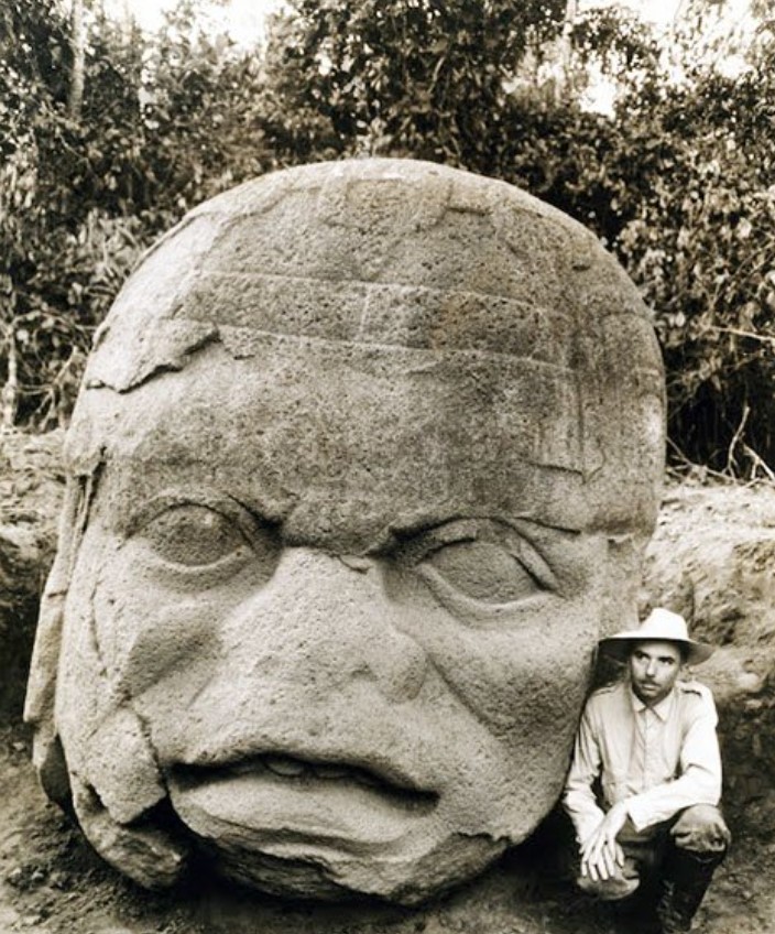 Matthew Stirling cùng cộng sự đã phát hiện ra những bức tượng đầu đá khổng lồ, bằng chứng của nền văn minh Olmec.