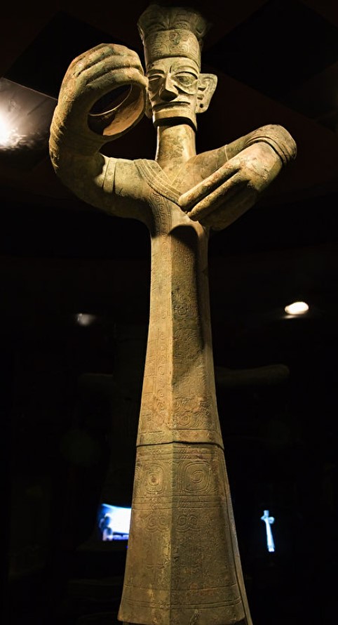 Tượng đồng đứng hiện đang được lưu giữ ở Bảo tàng Tam Tinh Đôi ở Quảng Sơn, Tứ Xuyên, có lịch sử hơn 3.000 năm, là tượng đồng cao nhất và lâu đời nhất được phát hiện ở Trung Quốc. (ShutterStock)